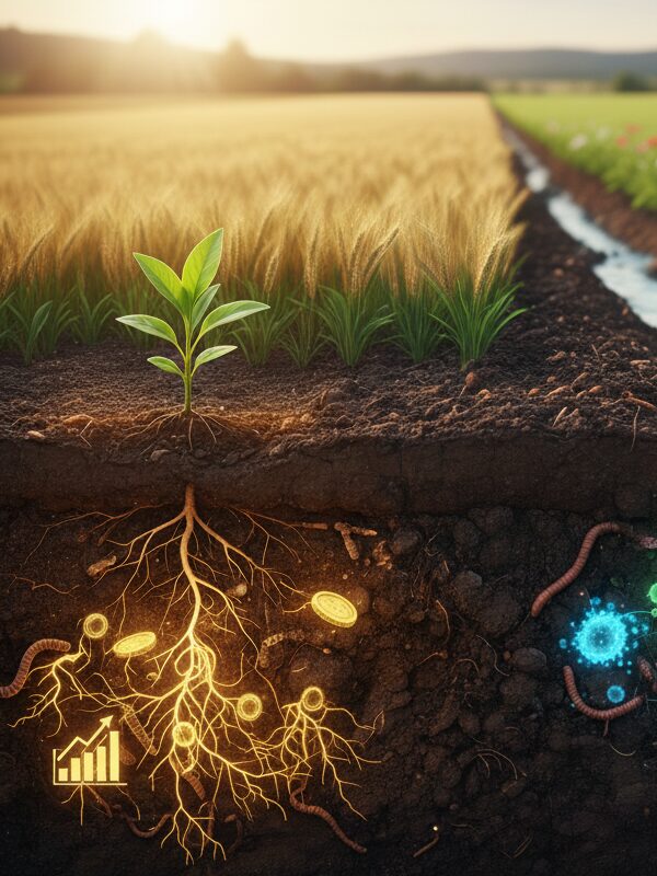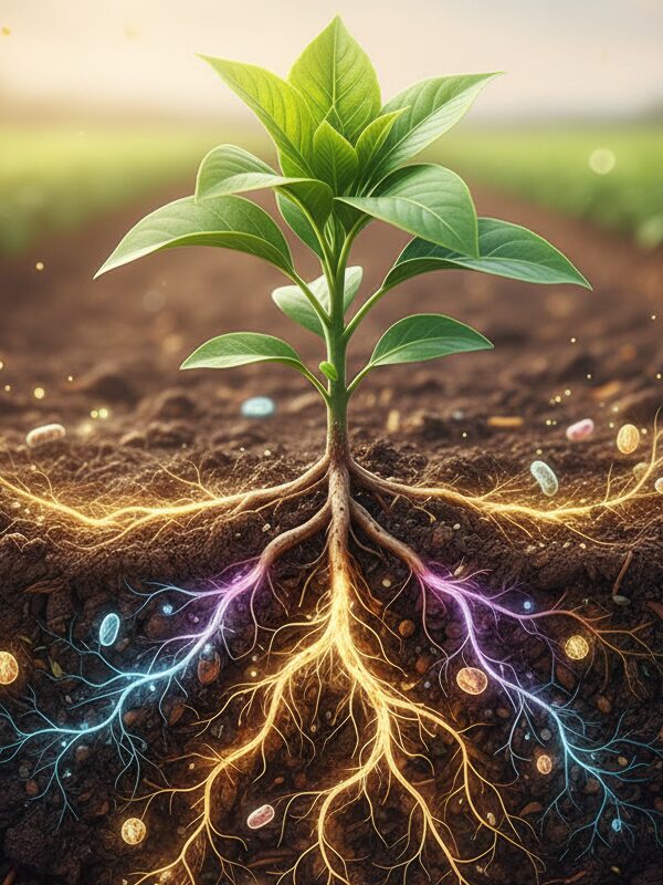 Asimilación de macro y micronutrientes del suelo para el metabolismo y desarrollo óptimo vegetal..