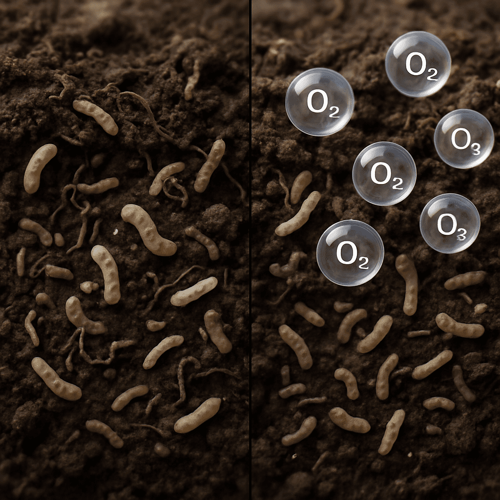 - Cuando los poros del suelo llenos de agua impiden la difusión del O2 desde la atmósfera hacia el suelo, la provisión de oxígeno puede agotarse.