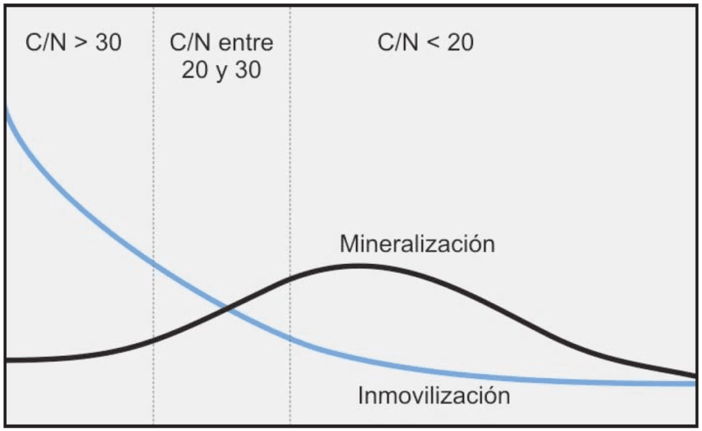 - Determina la competencia por nitrógeno entre microorganismos (C/N).