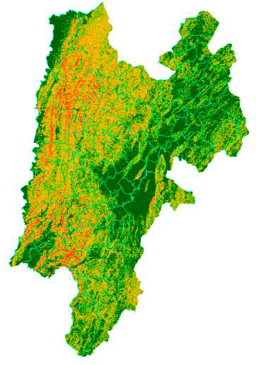 Al realizar el proceso de reclasificación, se obtiene la distribución espacial del índice de Fournier modificado en el territorio, evidenciando las zonas con mayor grado de afectación.