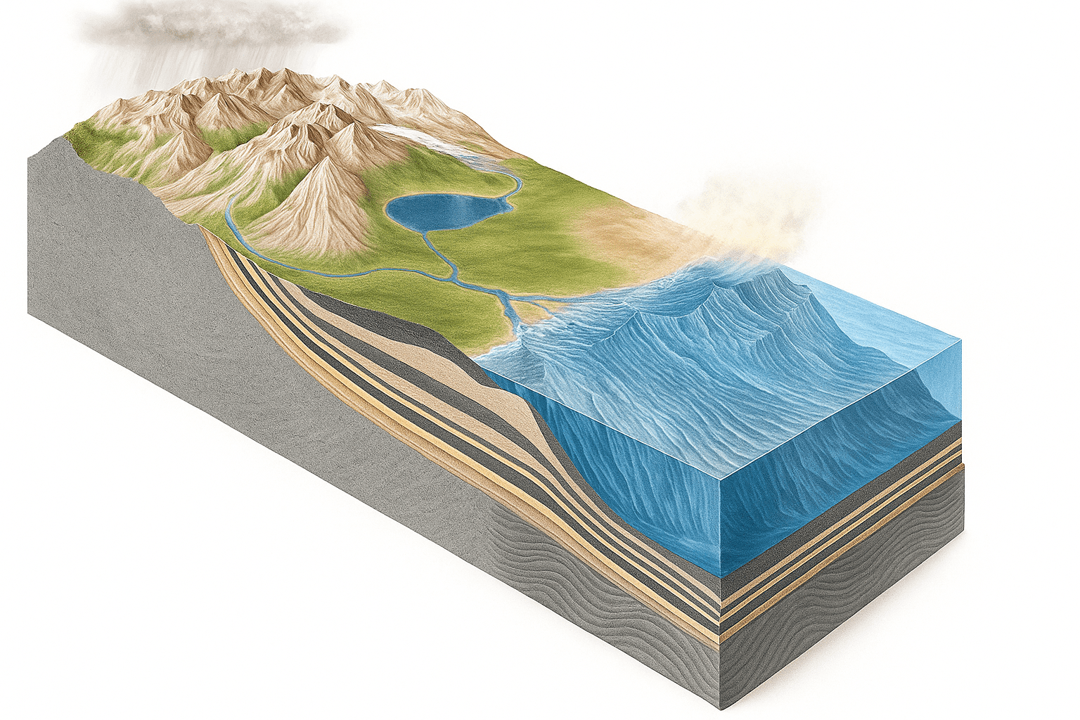 Las rocas sedimentarias se originan por la meteorización y erosión de la corteza terrestre, generando partículas de diversos tamaños que son transportadas por hielo, agua o aire.