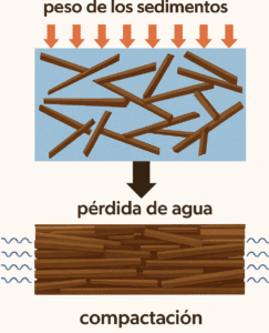 Comprende los procesos que reducen la porosidad y aumentan la compacidad de los sedimentos, consolidándolos en rocas sedimentarias.
