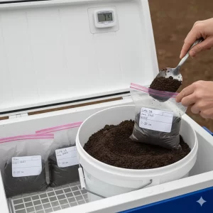 Extraer 100–200 g por submuestra con barreno o pala limpia.